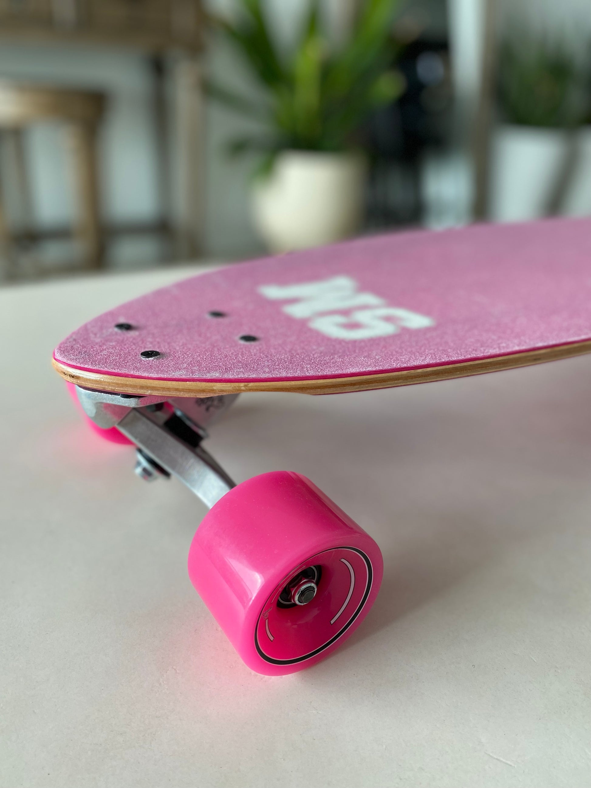 The Santa Monica Pink Bloom Carver is a smooth and stable 40” drop-through longboard designed for effortless carving.